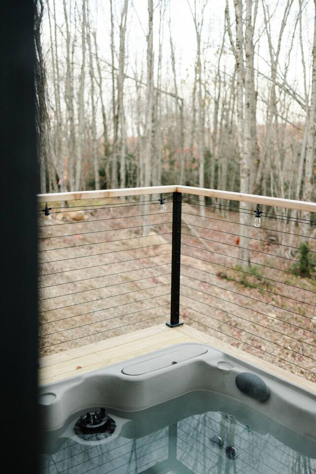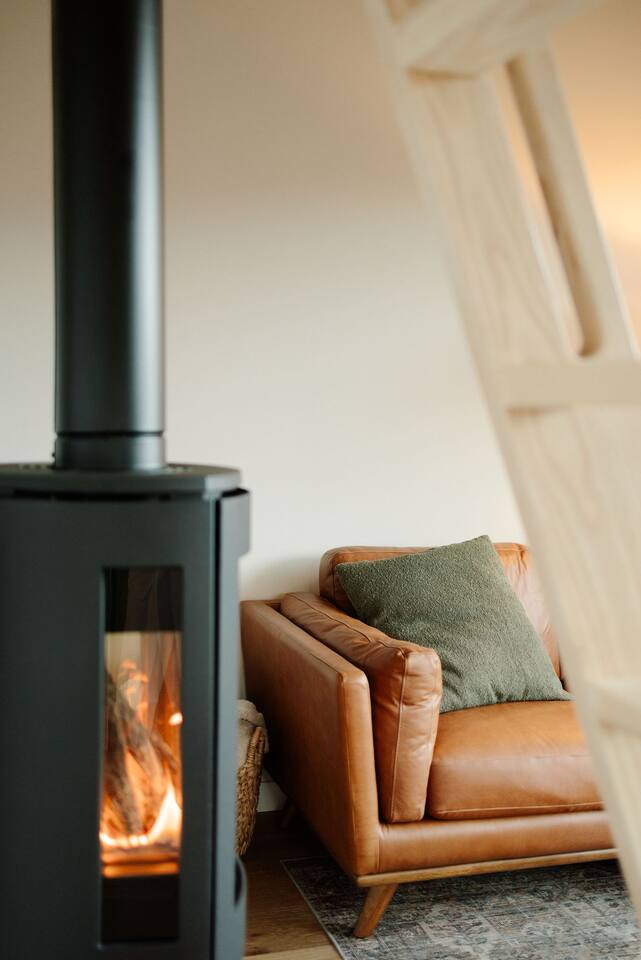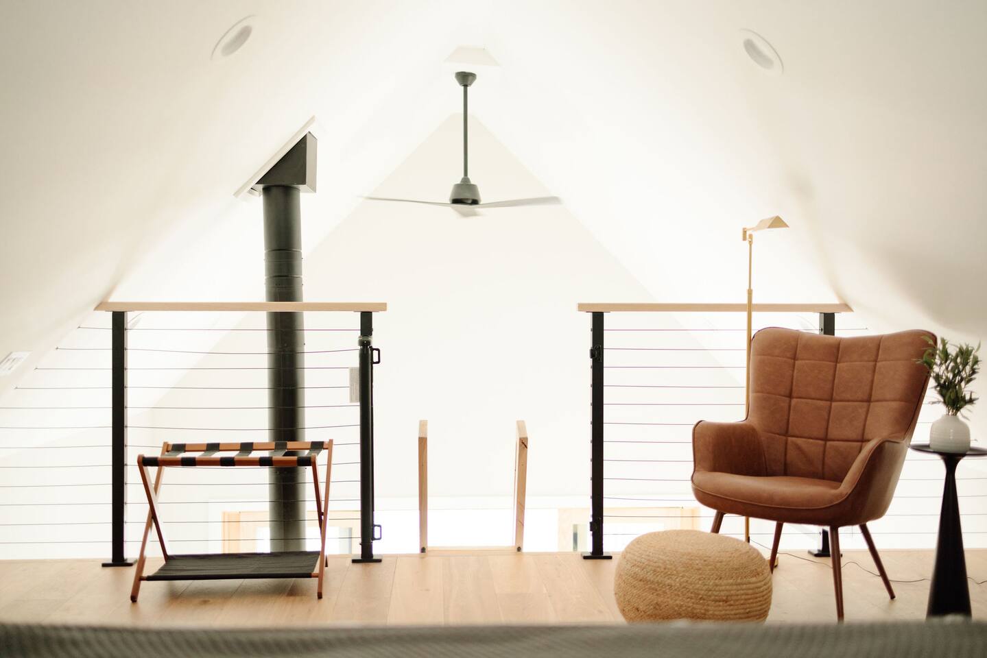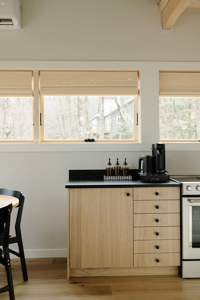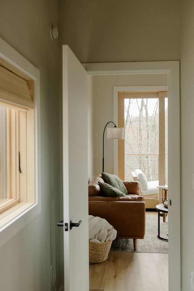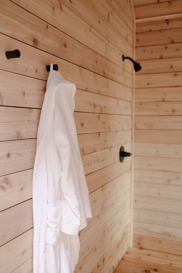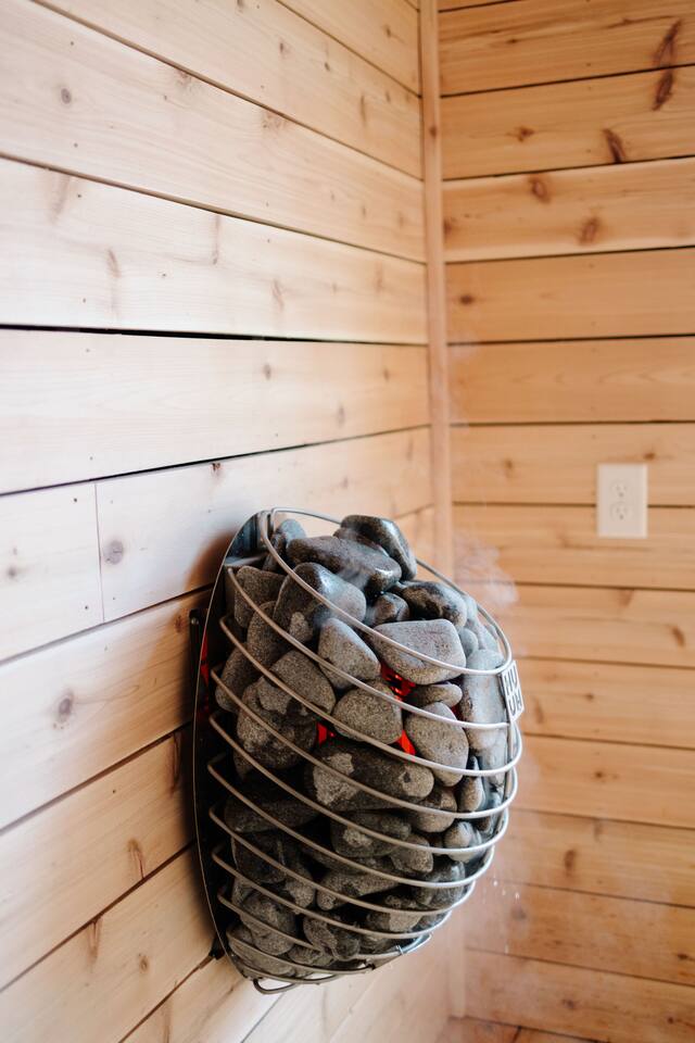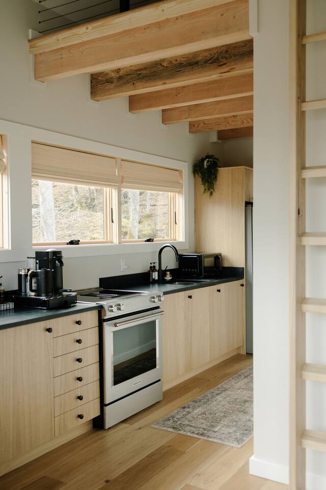 LIVING ROOM: The cozy living room with large, surrounding windows bring the feeling of outdoors inside with a direct entrance onto the back deck, sauna house & heated spa. Enjoy the modern wood stove from the leather couch while you drink a glass of wine or read a book from our small selection. Utilize our portable battery powered TV to stream on a platform of your choice - such as Amazon, Netflix, Hulu, Peacock, etc. Please bring your own logins and passwords. Finally, enjoy a delicious meal or work a puzzle at our dining table which comfortably seats four. KITCHEN: You’ll find the kitchen to be fully stocked with non-toxic cooking utensils and appliances including: • Full size range & oven • Full size fridge & freezer • Microwave, instant pot, toaster & blender • Olive oil, salt, pepper • Grill utensils + fire roasting sticks • Nespresso machine with milk frother, stocked with pods featuring multiple roast profiles and organic syrups • Stove top kettle with a small selection of organic tea *please note there is no dishwasher* BEDROOM: The downstairs Bedroom: features an organic queen size mattress with luxury, organic sheets, pillows and duvet. You’ll also find robes for each season in the closet for your enjoyment. LOFT: The upstairs loft boasts an organic king size mattress with the same luxurious, organic sheets, pillows and duvet. You’ll stay comfortable in this space year round with a portable heater and fan. Be sure to explore the shelves to find games, puzzles and kid friendly activities. OUTDOOR SPACE: The back deck features seating for four around a concrete fire pit, a propane grill, a sunken hot tub & sauna house complete with a shower.