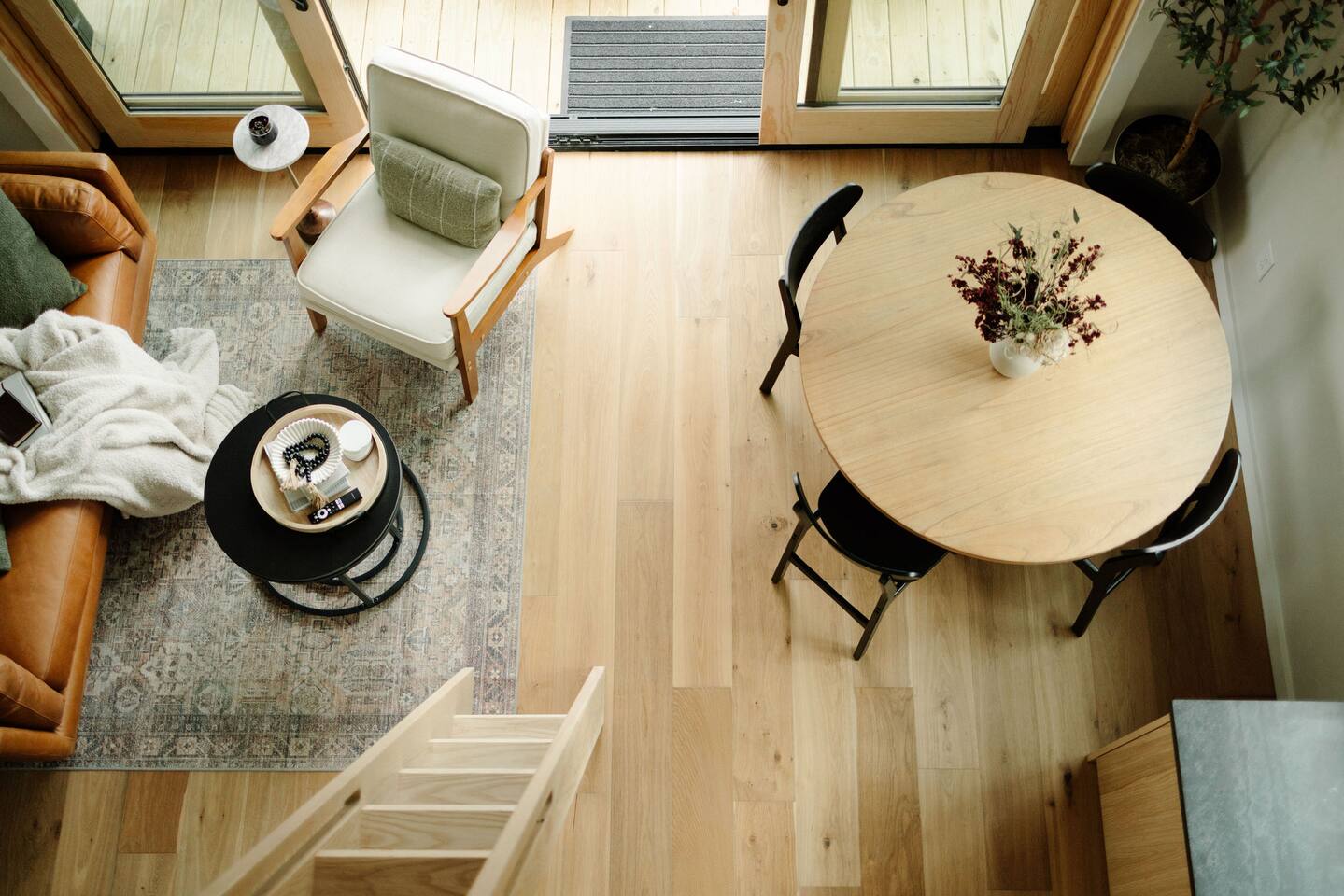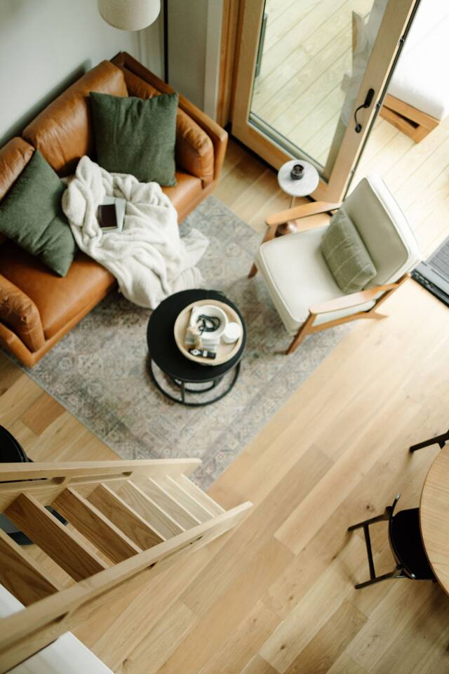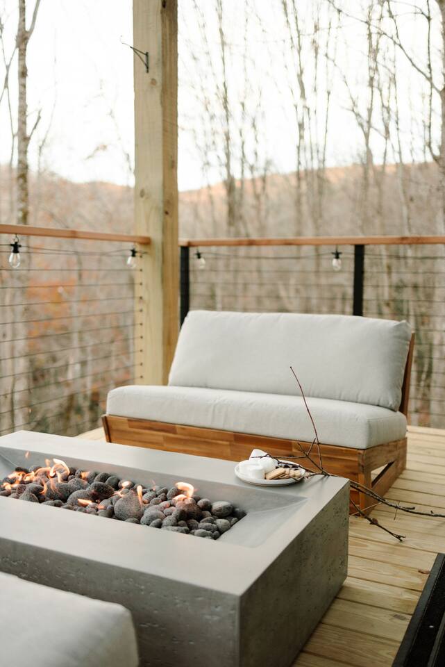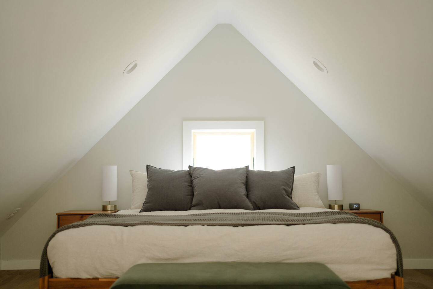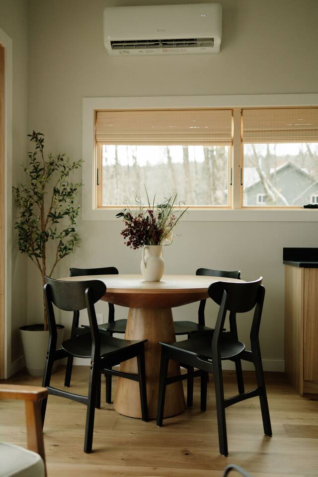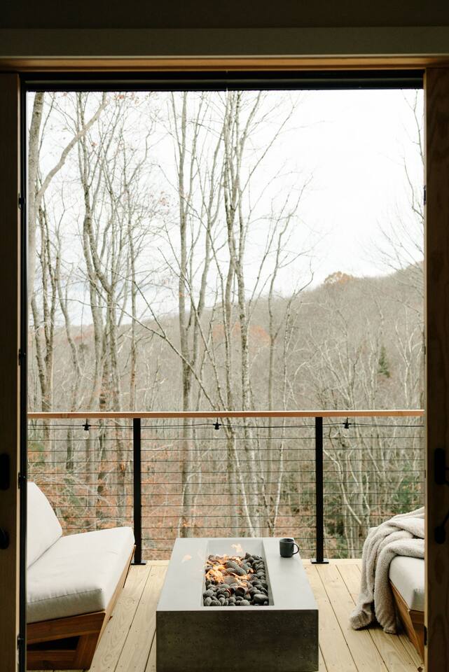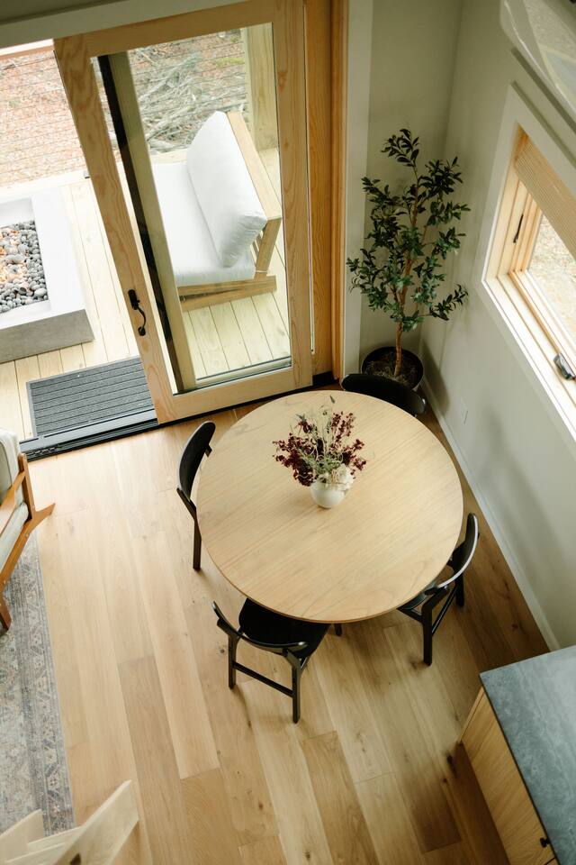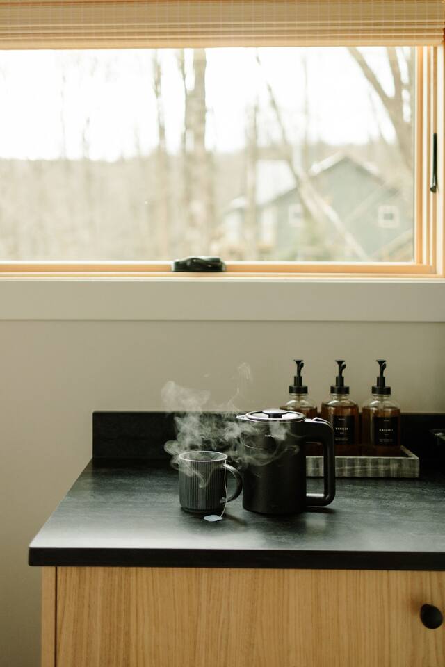 LIVING ROOM: The cozy living room with large, surrounding windows bring the feeling of outdoors inside with a direct entrance onto the back deck, sauna house & heated spa. Enjoy the modern wood stove from the leather couch while you drink a glass of wine or read a book from our small selection. Utilize our portable battery powered TV to stream on a platform of your choice - such as Amazon, Netflix, Hulu, Peacock, etc. Please bring your own logins and passwords. Finally, enjoy a delicious meal or work a puzzle at our dining table which comfortably seats four. KITCHEN: You’ll find the kitchen to be fully stocked with non-toxic cooking utensils and appliances including: • Full size range & oven • Full size fridge & freezer • Microwave, instant pot, toaster & blender • Olive oil, salt, pepper • Grill utensils + fire roasting sticks • Nespresso machine with milk frother, stocked with pods featuring multiple roast profiles and organic syrups • Stove top kettle with a small selection of organic tea *please note there is no dishwasher* BEDROOM: The downstairs Bedroom: features an organic queen size mattress with luxury, organic sheets, pillows and duvet. You’ll also find robes for each season in the closet for your enjoyment. LOFT: The upstairs loft boasts an organic king size mattress with the same luxurious, organic sheets, pillows and duvet. You’ll stay comfortable in this space year round with a portable heater and fan. Be sure to explore the shelves to find games, puzzles and kid friendly activities. OUTDOOR SPACE: The back deck features seating for four around a concrete fire pit, a propane grill, a sunken hot tub & sauna house complete with a shower.